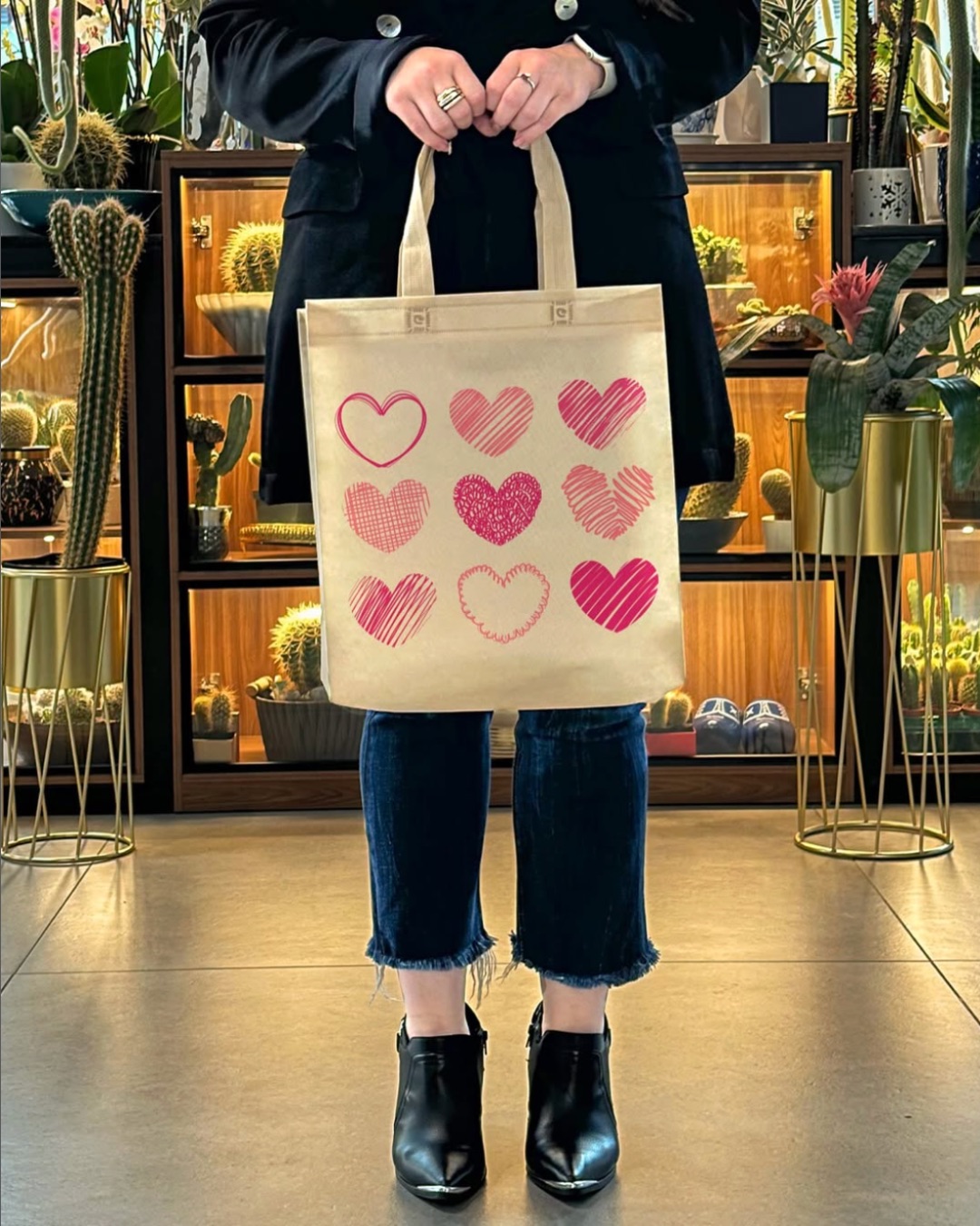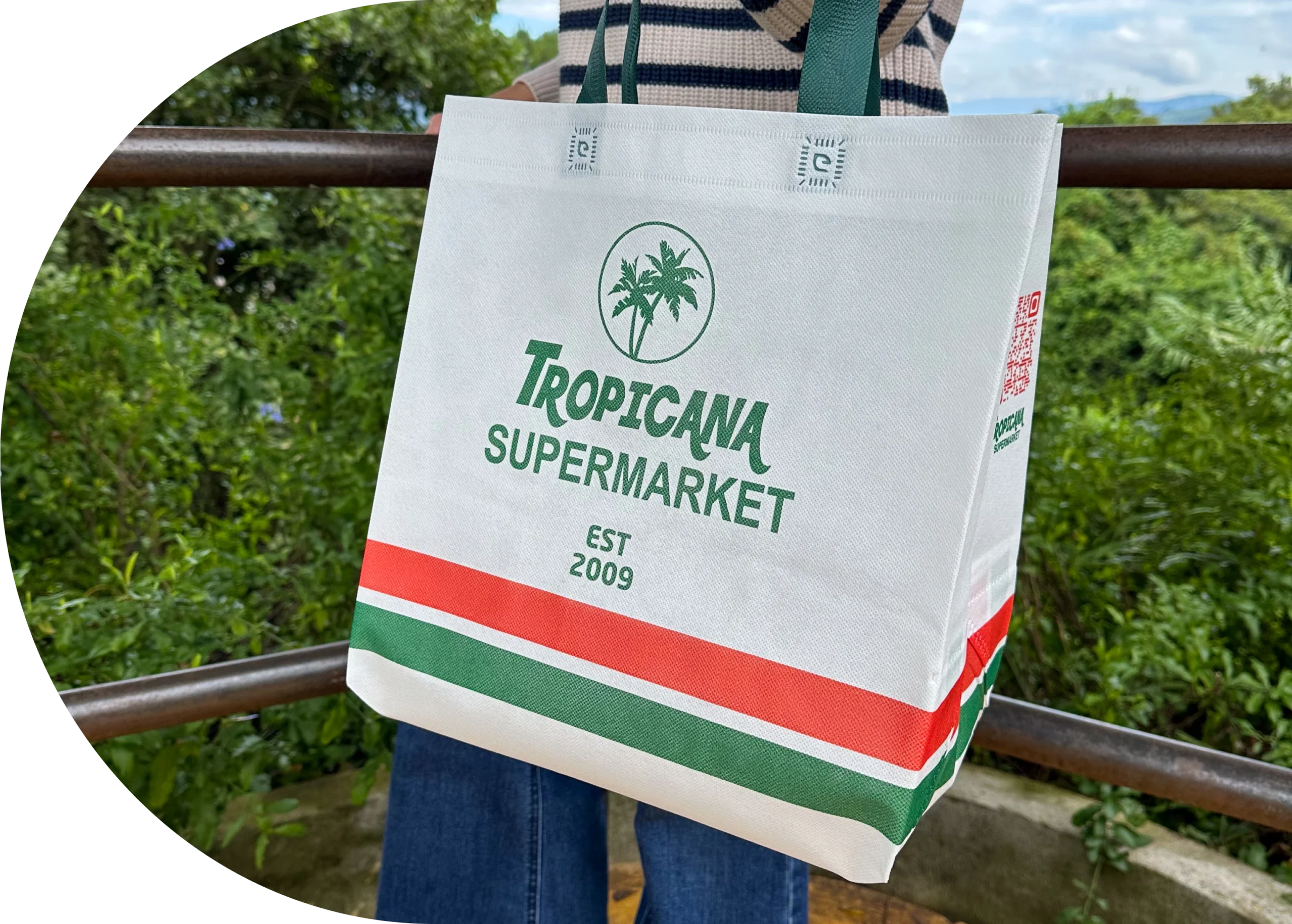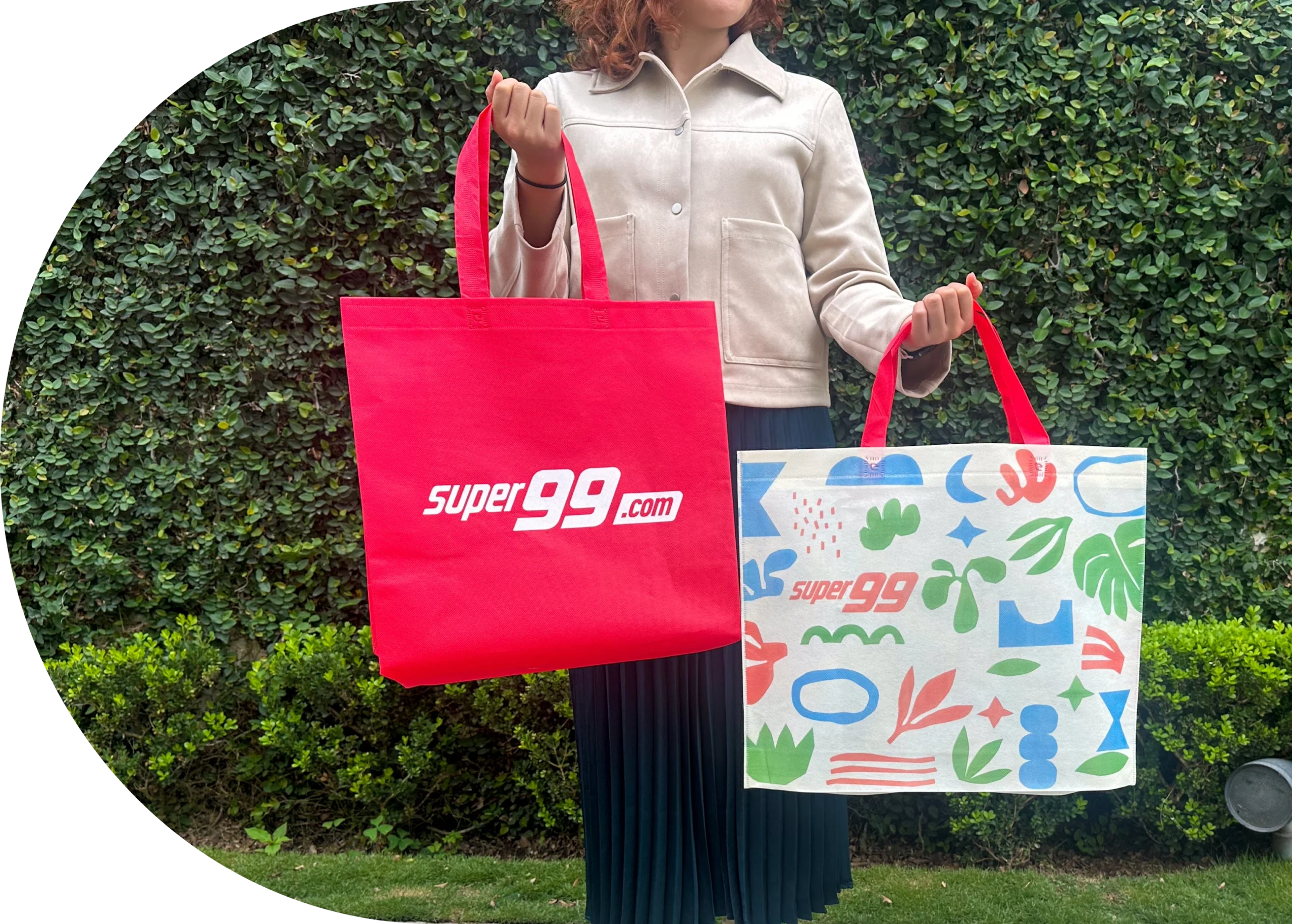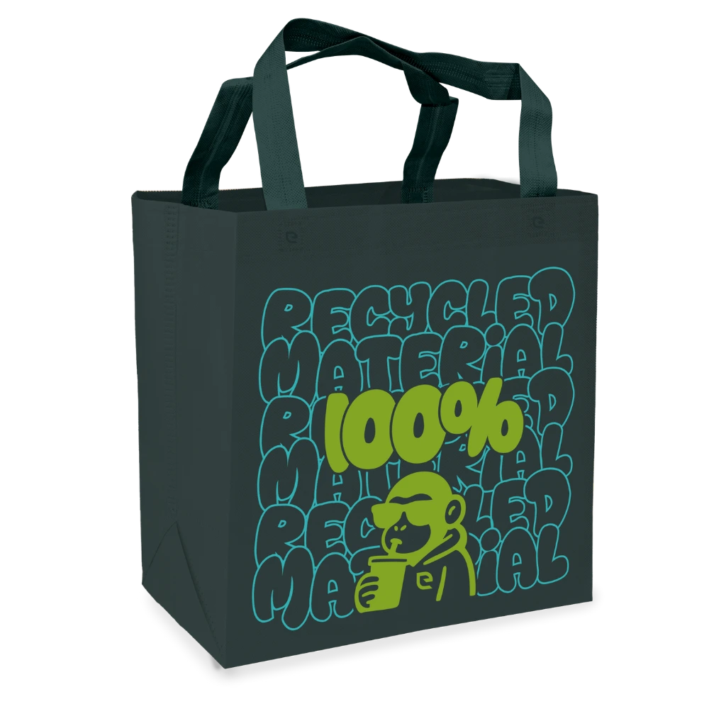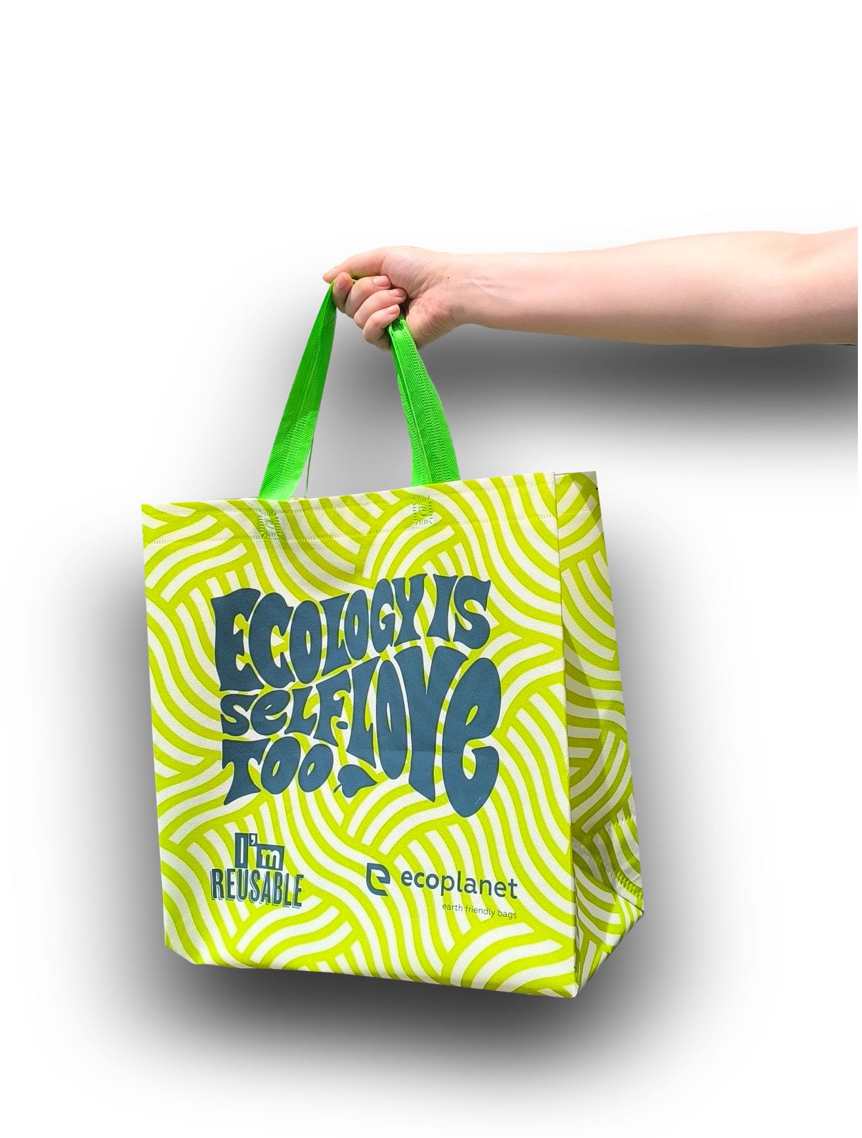 Our bags are made with a high percentage of post-industrial recycled material, promoting the circular economy, and are 100% reusable and recyclable.